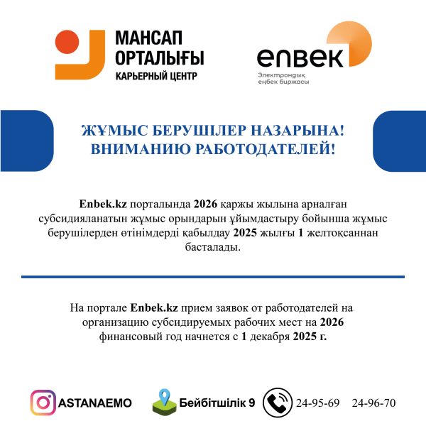 Жұмыс табуда қиындықтарға тап болған азаматтар үшін бос жұмыс орындарын таңдаймыз