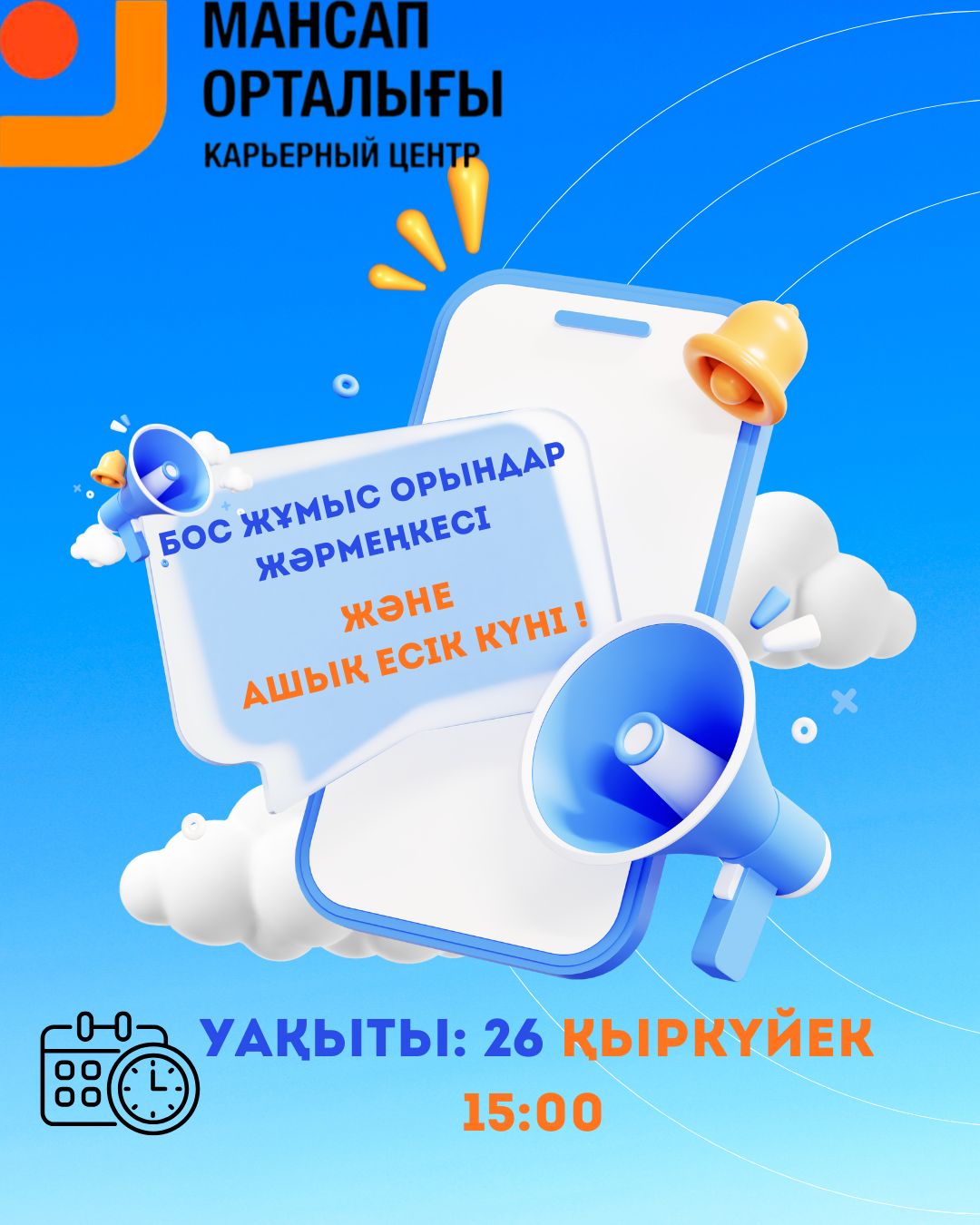 🎯 Сіздерді кәсіби бағдар беру, жаңа жұмыс орындары және өз мамандығыңызға сәйкес мүмкіндіктермен танысуға шақырамыз!