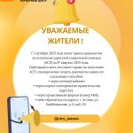 Уважаемые жители! С 1 октября 2025 года начат прием документов на получение адресной социальной помощи (АСП) за IV квартал 2025 года.