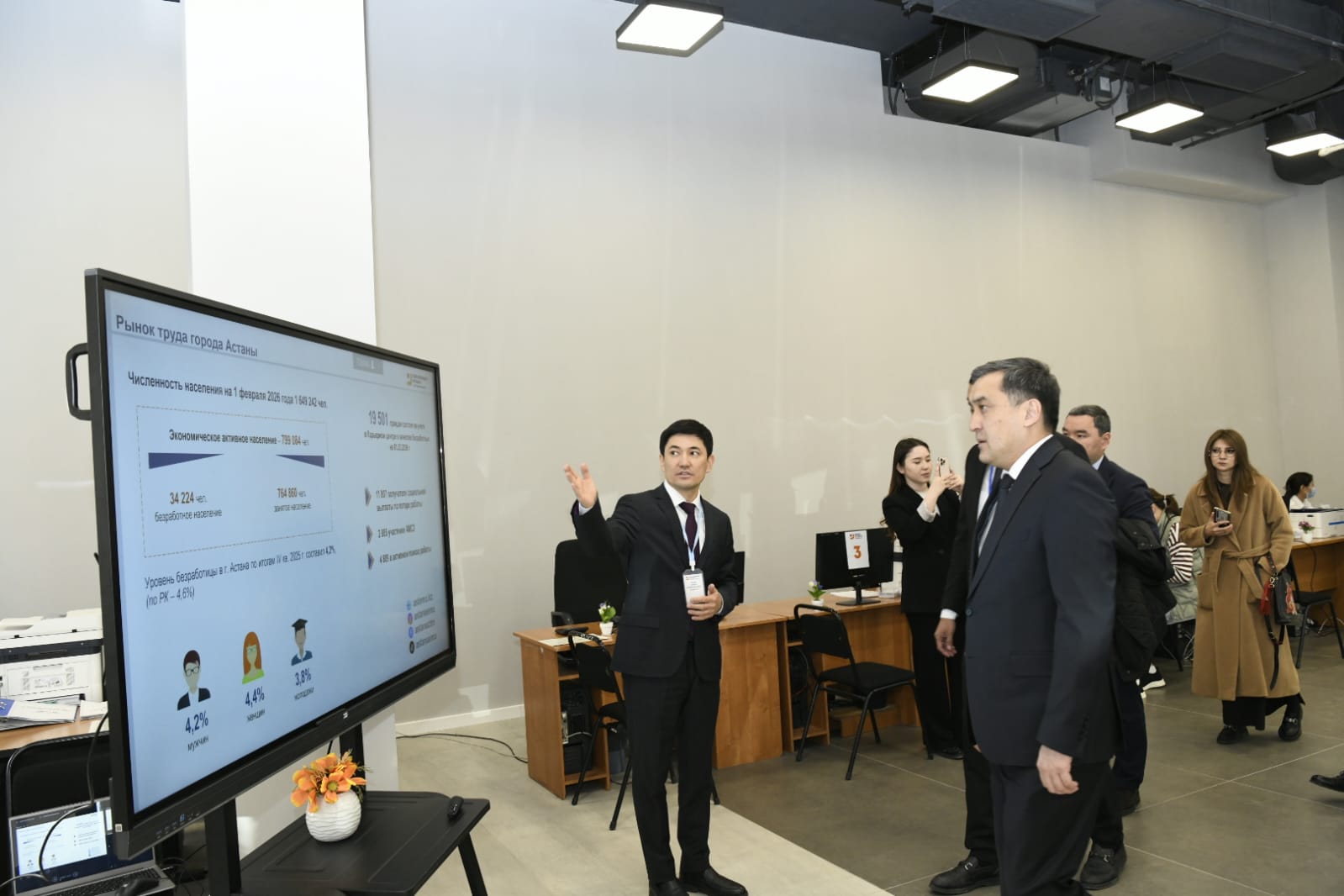 Делегация өкілдерін «Еңбек мобильділігі орталығының» директоры Олжас Омар қарсы алып, орталықтың жұмыс барысымен таныстырды.